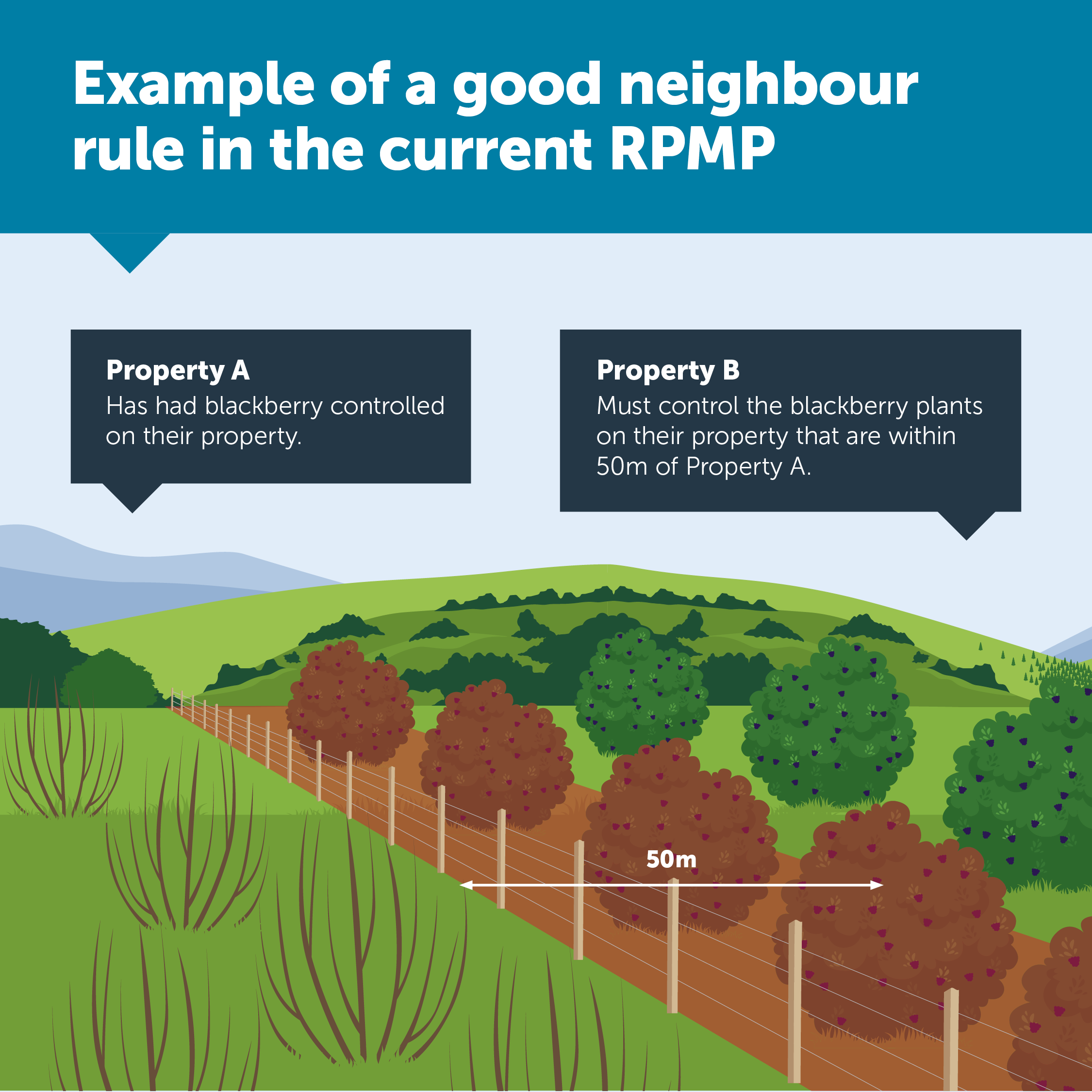 The National Policy Direction on Pest Management (NPD) allows Horizons to include “good neighbour rules” in limited situations. These rules require a landowner to manage a pest if it would otherwise spread to nearby land and cause unreasonable costs for neighbours who are already doing their part to control it.