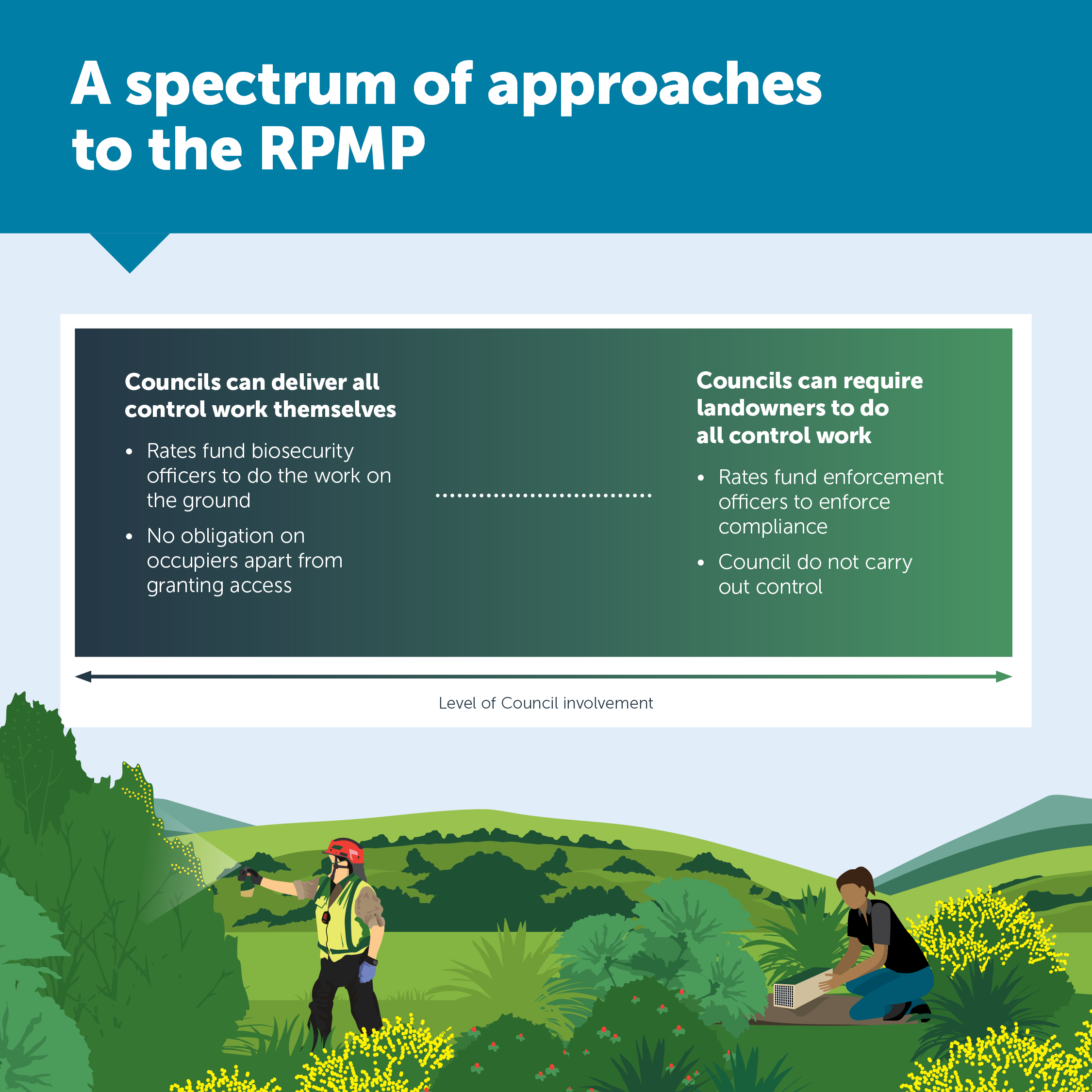 There is a spectrum of approaches to implementing pest management under a Regional Pest Management Plan.